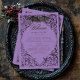 Öka ditt gotiska bröllop med ett viktorianinspirerat bröllopsprogram som exuderar tidlös elegans och mysterium. Designat för att likna en antika bok-bindning, är den här fantastiska designen komplicerad för en svart och lila laktatfiligree, vilket framkallar en gammal tids charm. Ett fladdermus med sitt vingar-uppslag sitter i toppen av designen. Låt din kärlek-historia utvecklas med ett program som är lika oförglömligt som din dag. Skapat av Farmhouse Press.