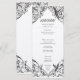 Höj ditt gotiska bröllop med en Victorianinspirerad bröllop-meny som exuderar tidlös elegans och mysterium. Designad för att likna en antika bok-bindning, har denna bedövande design en komplicerad svart laktusfiligree på brunkraftens pappra, vilket framkallar en gammal charm. Låt din kärlek-historia utvecklas med ett program som är lika oförglömligt som din dag. Skapat av Farmhouse Press.