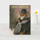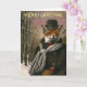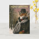 Julkortet illustreras med en Viktoriansk räv i en halsduk och varma kläder som sätts framför en scen i snö.