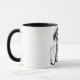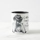En skiss av en segrande eran kvinna i doldrummen på mugg. Säger "kaffe"? Jag behöver en drink". En ibland sann men humoristisk kaffebekännelse.