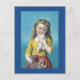 Ett Viktorianskt handelskort från 1800-talet av en flicka som håller en kattunge i sina kjolar och höjer en till hennes chin.