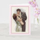 Retro / Vintage årsdag / Alla hjärtans dag / Bröllop välkomstkort. Vacker kvinna och man som kramar och delar en romantisk kyss. Perfekt kort för alla tillfällen för att uttrycka djup kärlek.