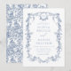 Victorian Monogram Fransk Blue Blommigt Bröllop Inbjudningar
