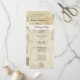 Det här vackra kortet beskriver din ceremoni på ena sidan och listar din bröllopsfest på den andra. Den har en vintage som är utformad för ro och musik.
