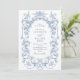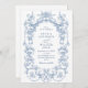 Victorian Ornate Blommigt Dusty Blue QR kod Bröllo Inbjudningar