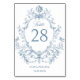 Victorian Ornate Grace Blommigt Dusty Blue Bröllop Bordsnummer