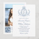 Victorian Ornate Grace Blommigt Dusty Blue Bröllop Inbjudningar