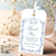 Victorian Ornate Grace Blommigt Dusty Blue Bröllop Presentetikett