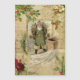 God elegant julsammansättning med gammalt grönt-belagt Pappa jul inramat av vintage holly, ro, hund och gräs med ornat ro blomstrar på nödställda havsbottnar.