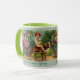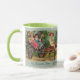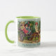 Mugg med viktorianska barn i en blomkorgen och trogen hund som drar i vårtid och ord "Min favorittid - Vår"