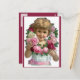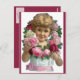 Söt Viktoriansk flicka med Ro-andetag. Det här vintagens vykort har burguny gräns.