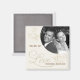Romantisk Victorian Bröllop Spara-the-Date-kylmagnet. Elegant vintage finare blommigt snurrar i elfenbensbakgrund för det traditionella bröllop paret. Anpassa den här romantiska påminnelsen med brid- och triomfoto, namn och bröllop-datum. Underbar påminnelsegåva eller förmåner för de speciella gästerna på din lista. Matchande bröllop-paket, trendig- och snyggt-möhippor för duschar, tillbehör och andra bröllop-essentialer som finns tillgängliga.