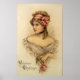 En vacker Victoriansk kvinna som håller en blek rosa och röd ros med "Valentine Hälsning" i skript.