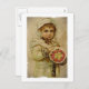 Den vintagevänd-av-århundradet julkortet avbildar av hållande bukett för liten flicka av rosor och gul ros.