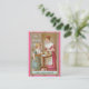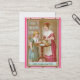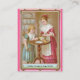 Klockor för en flicka som henne modern öppnar en hänga lös av mjöl i en bunke, så hon kan börja henne bakningen i ett 19th kort för århundradeVictorianscrapbook.