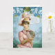 Ett förtjusande vykort med en viktoriansk kvinna med en solfjäder i en landskapsbakgrund.