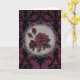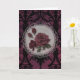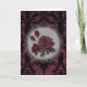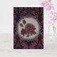 En rödaktig-lila ros i en spetsram, på en burgunderröd och svart damastbakgrund gör ett vackert gotiskt tema födelsedagskort. Mörkt och elegant, mycket feminint.