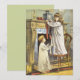 Gammal illustration Julbild från den viktorianska eran med syskon, en bror och en syster som arbetar tillsammans. Den snälla pojken och flickan hänger strumpor vid eldstaden på julaftons kväll i väntan på tomten. 'The Night Before Christmas' av William Roger Snow, 1918.