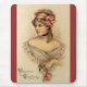 Gammal valentinskärmaskin med en elegant victoriansk kvinna som håller en röd ros.