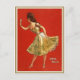 Det här är Vaudeville-stjärnan Anna Held, mot en djärv röd bakgrund, och håller i ett litet kort där det står "Kom och lek med mig."