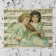 Gammal illustration Jul helgdag religiöst motiv med två änglar; antika viktorianska utskurna bilder ovanpå notblad. En ängel spelar ett stränginstrument, fiolen, och den andra ängeln håller notblad. Låt denna vackra änglaliknande design hjälpa dig att fira högtiderna denna säsong.