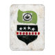 En bild av brinnande kaffe kopp i svartvitt sitter på en grönt över svarta och vita stjärnor, stora röda prickar och vit texturerad bakgrund.