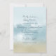 Kortet för inbjudan till bröllop på vattenfärgen/informationskortet innehåller abstrakten för en havsstrand där vågar rullar på en sandstrand - blandad typsnitt-text är en koordinatblått - personliggör ceremonin på bröllop på kortets framsida; ytterligare beskrivande detaljer finns på baksidan av kortet - lägg enkelt till en webbplats QR-kod med Zazzles Design Verktyg - av katz_d_zynes