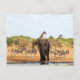 Elephant, giraffe och zebra vid ett vattenhål i Etosha nationalpark, Namibia