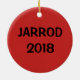 Videospelarens ornament (lämnat vänd mot) med anpassadets bakgrund färg och text på baksidan.