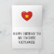 Fin design omfattar lycklig-ballonger och däcksband med ord "Grattis på födelsedagen", täckta i färg i Vietnams flagga. Design avslutas med hjärtat i Vietnam flagga och i födelsedagsmeddelandet. Inslag är fullt anpassade med funktionen "Anpassa det!". Det här färgfulla födelsedagskortet är den perfekt som finns för din vän från Vietnam. © LänderAvVärlden