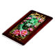 Grönt Dragon papper-cut med rosa peonies papper på struktur av trä (bild tryckt) som bakgrund + Önskemål på vietnamesiska (originalhandskrift) + stor guldskrift 2024. Design på rektangulär fotomagnet i lodrät. Matchande gratulationskort, vykort för helgdag och rektangulärt lodrät. Perfekt för Vietnams nya år i draken 2024.