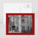 Svart och vitt fotografi och rött gräns på en gatuscen i Vieux Quebec, Kanada