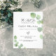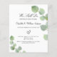 En vit bakgrund dekorerad med eukalyptus grönska, kvistar. Anpassa och ditt namn och ceremonidetaljer.