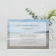 Denna efterbröllopsinbjudan har en vacker strandscen. Det är den perfekta inbjudan till efterbröllopsfesten efter ett litet bröllop på stranden eller när du vill ha ett bra strandtema på dina efterbröllopsinbjudningar. Denna efterbröllopsdesign låter dig placera namnet på bruden och brudgummen högst upp, tillsammans med datum och plats för äktenskapet; och ger sedan plats för detaljerna i din efterbröllopsinbjudan. Copyright henishouseofpaper