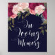 En vacker marinblå skylt att visa upp på din vigsel/din fest för att hedra dem som inte kan vara med dig. Utsmyckad med rosa och burgunderfärgade blommor. Massor av matchande skyltar och brevpapper i denna kollektion finns i min butik.