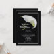 Paret föredrar ofta att bjuda in vänner till en efterbröllopsfest istället för en bröllopsfest. Det är ett bra sätt att låta alla veta att ni är gifta och fira er äktenskap efter bröllopet. Denna eleganta blommiga efterbröllopsinbjudan har en vit calla lily på svart bakgrund. Brudens och brudgummens namn visas till vänster om liljan med alla detaljer om er efterbröllopsfest nedan. En mycket elegant och vacker efterbröllopsinbjudan. Copyright henishouseofpaper