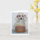 Poodelvänner kommer att njuta av detta födelsedagskort med en nyklippt poodle som blickar ut över en födelsedagstårta.