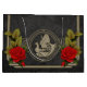 Vikande mystisk charm med elegant keltiska knop. Ett känsligt ram guld-färgad med ornatkeltiska knop omger utformningen och betonar dess traditionella, mystiska charm. I mitten finns ett cirkulärt inslag med en frakt i guld-färgaden som seglar på det milda vinkara planet, en symbol för gemensamma resor och nystart. Cirkeln omges av ytterligare keltiska knop, som betonar parets band och arv.
