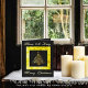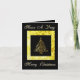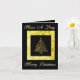Detta utsmyckade, grafiska julkort, är en digitaliserad, rullad, julgran, i förgylld guld, visad på en svart, bakgrund, och inramad i ett simulerat, präglat mönster av guld-med julhälsningar, i skriptad guld, teckensnitt.