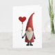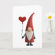 Vikbart Alla hjärtans dag-kort. Flera storlekar. Kan anpassas. Bedårande tomte iklädd rött håller en röd hjärtballong.