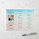Vikbart bröllopsprogram för strandbröllop med tredelad vikning, med fotomall och plumeriablommor. Turkos vatten och matchande text över en bild av sandstrand med fyrkantigt foto av paret, som kommer att vara på framsidan av detta vikbara program. **Observera att baksidan av detta papper kommer att vara vit - ingenting kan läggas till baksidan.