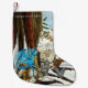 En norsk skogskatt är sitta vid ett träd med en blå drake sitta i en slaghjälm. Snö runt dem och ett svärd bakom en viking battyxa bredvid dem.
