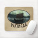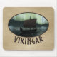 En något stiliserad bild av ett Viking-långfartyg som seglar på natten under norra Ljus finns där ett par isbergs; de flesta besättningar sover. Text som läser "VIKINGAR" (Vikings) visas också. Det här är en avfasad eller vintage av den ljusare originalbilden som också finns tillgänglig.
