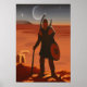 En viking krigare med armor och sköld på den röda planeten Mars med två måne på himlar. Det här är en AI-skapad konst.