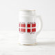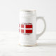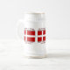 Ölkrus med Danmarks flagga och orden VIKINGABLodet FLÖDAR GENOM MINA ÅDRO och IBland DERAS ÖL. Rolig design visas på tre ställen på muggen. Underbar present till din danska öldrickare.