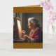 En kvinna fokuserar på att måla en bild på sin staffli i denna underbara bild.