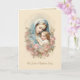 Detta vördnadsfulla katolska kort har en öm vintageillustration av den saliga jungfru Maria som omfamnar Kristusbarnet, infattad av en krans av mjuka blommor. Inskriptionen lyder "På din dopdag", vilket gör det till ett vackert välkomsttecken in i den heliga katolska kyrkan. Inuti talar ett hjärtligt meddelande om nåd, glädje och marianisk förbön, med helig skrift (Johannes 3:5) och en blomsterdekoration. En perfekt souvenir för en gudbarn, barnbarn eller någon nyligen döpt själ.