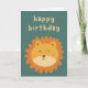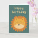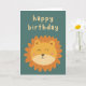 Framsidan på kortet visar ett sött lejon och texten 'Grattis på födelsedagen'