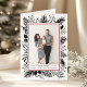 Dela ett detta favorit- foto jul med vårt sött festliga vikta helgdagfotokort som presenterar en röd gräns för cranberry med chic svartvita botaniska löv och bär som ut kikar på kanterna. Personifiera med din namn och beställnings- hälsning på bekläda. Tillfoga ett valfritt inre meddelande älskade som använder det förutsatt att fält.