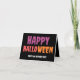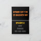 Halloween vikt inbjudan med svart bakgrund och orange gul och rosa typsnitt genom hela kortet.
